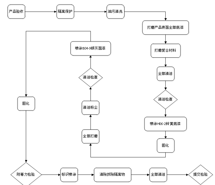 以H06-2鋅黃底漆、B04-9銀灰面漆為例,具體的噴漆過程流程圖如圖1所示。