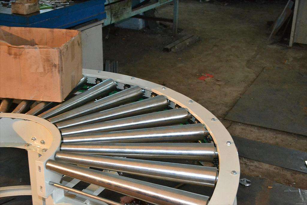 噴涂生產(chǎn)線單層包塑棍子積方式托盤輸送線體,由兩個減速電機驅動,摩擦式傳動,共分5個工作區(qū)域,長約二十六米;考慮到輸送品種繁多、剝漆、打磨二個工序,不同的產(chǎn)品工序時間變化較大,為避免工作過程中形成瓶頸工序,特在此2個工序間專設物料待放區(qū)域,以確保線體輸送流暢。同時考慮到托盤對產(chǎn)品的兼顧,托盤采用500*1000的規(guī)格,縱向輸送,便于操作。