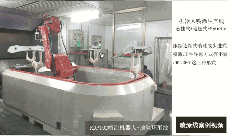 機器人是6軸自動涂裝機器人,被廣范應(yīng)用到木制品,金屬件,塑料件等領(lǐng)域的噴涂噴工作,機器人噴涂線生產(chǎn)節(jié)拍允許最大鏈速3米/分鐘,機器人噴外表面和人工噴內(nèi)表面相結(jié)合實現(xiàn)工件全覆蓋噴涂。噴涂漆料使用單組份溶劑型涂料,噴槍用的是自動空氣靜電噴槍。