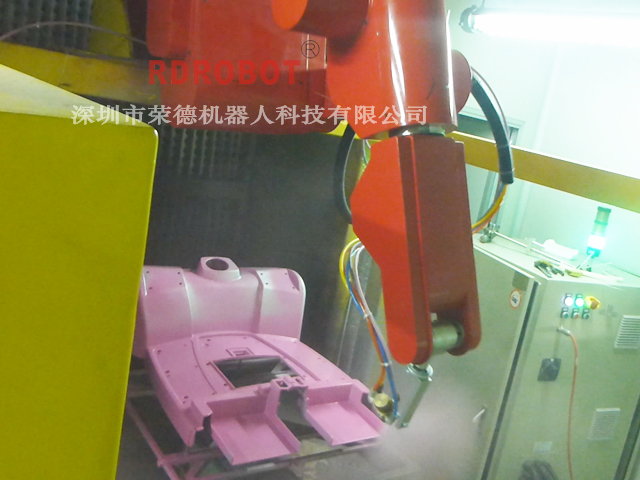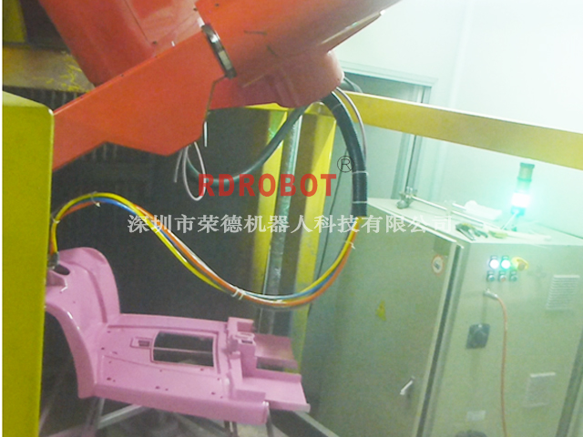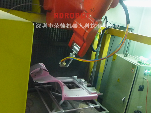 1. 采用目前世界上最前沿的技術-中空手腕,機器人的手腕上安裝末端工具的法蘭,采用中空結構的形式,使得各種管纜費穿整個手腕;2.自主研發(fā)且通過深圳自主創(chuàng)新產(chǎn)品認定并獲得國家科技部創(chuàng)新立項的高性能噴涂機器人;3.各部位轉動關節(jié)主要通過伺服馬達帶動精密減速器驅(qū)動,任意空間直線和圖標;4.數(shù)字涂裝:通過數(shù)字化參數(shù)轉化成模擬量電信號輸出,氣動比例閥接收該信號,轉變成氣壓變化,通過氣壓控制噴涂的形狀、氣流速度、油漆流量;5.體積小、工作范圍大、速度快、精度高,可與轉臺、滑臺輸送鏈系統(tǒng)等輔助設備集成作業(yè)。6.柔性大,可實現(xiàn)外表面和內(nèi)表面的噴涂。7.可按工件軌跡噴涂,可省涂料;8.設備利用高,基本上所有產(chǎn)品都適用;9.可以與輸送帶配合作動態(tài)同步跟蹤噴涂,提高生產(chǎn)效率;10.各個軸傳動沒有直線運動部件,不會產(chǎn)生粉塵掉落,適合無塵噴涂;機器人技術參數(shù) 機器人控制柜規(guī)格 機器人工作范圍榮德噴涂機器人技術特點1.噴涂精確,正常運行時間長、漆料耗用省、工作節(jié)拍短,可24小時不間斷工作,可靠性高2.噴涂速度快,噴涂均勻,依工件變化自動調(diào)整噴槍高低、前后、角度位置,噴涂大小控制靈活,360度全方位無死角噴涂。3.機器人防爆,環(huán)保,安全性能高,操作控制簡單易學。4.噴涂機器人可以同時噴涂2--5種不同的產(chǎn)品,一臺抵多臺。5.噴涂機器人壽命長,無易損件,保養(yǎng)簡單,比五軸噴漆臺少了導軌、皮帶等易損件;6.程序可存儲300組,可用U盤拷貝程序,管理方便簡單;7.對運動軌跡轉角處,可用圓弧過濾功能,在直線末端不用停止,直接圓弧過濾到下一條線,速度沒停,提高了效率,也減少了起停沖擊。8.對運動軌跡可任意加噴槍觸發(fā)器,按產(chǎn)品需要加噴涂位置開關槍,減少涂料浪費。